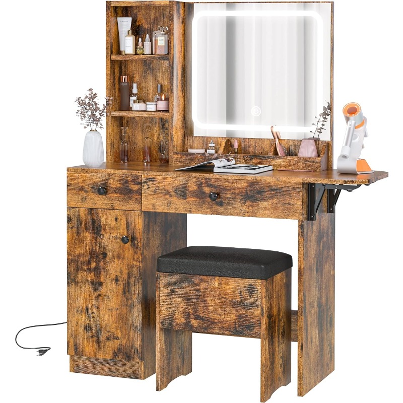 This vanity desk doesn’t just look good – it’s designed to make your daily routine easier and more enjoyable. The combination of functional storage, perfect lighting, and a power station makes this vanity a must-have for any beauty lover. Its large size (15.7″D x 44.1″W x 54.9″H) ensures that you have enough space to store all your makeup, hair products, and accessories while keeping everything organized. The adjustable shelves and expandable countertop provide even more flexibility, adapting to your needs as your beauty collection grows.